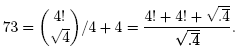 The first difficult prime to form under the rules of the four 4's puzzle. The problem is to find expressions for numbers using exactly four 4's and a finite number of mathematical symbols and operators in common use. One version of the rules allow only addition, subtraction, multiplication, division, square root, exponentiation, factorial, decimal point, parentheses, as well as concatenation. Here are two possible solutions (achieved by altering the rules above):